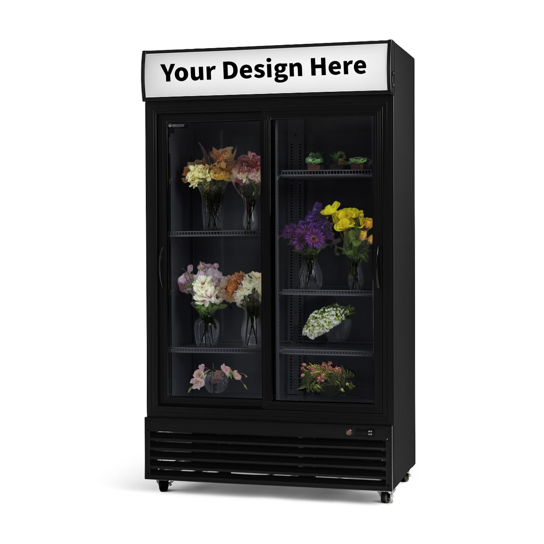 Energy saving features include R290 refrigerant and LED lighting on the interior and backlit ad canopy. Customized with your logo or design, this flower cooler will showcase your arrangements for customers to notice!
