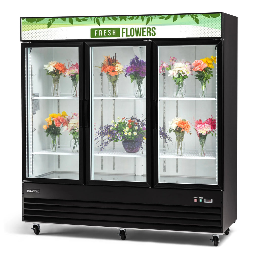This PeakCold 3 door flower cooler is ideal for flower shops and grocery stores or any market selling fresh flowers. Interior LED lighting highlights your floral arrangements and creates an attractive display for customers.