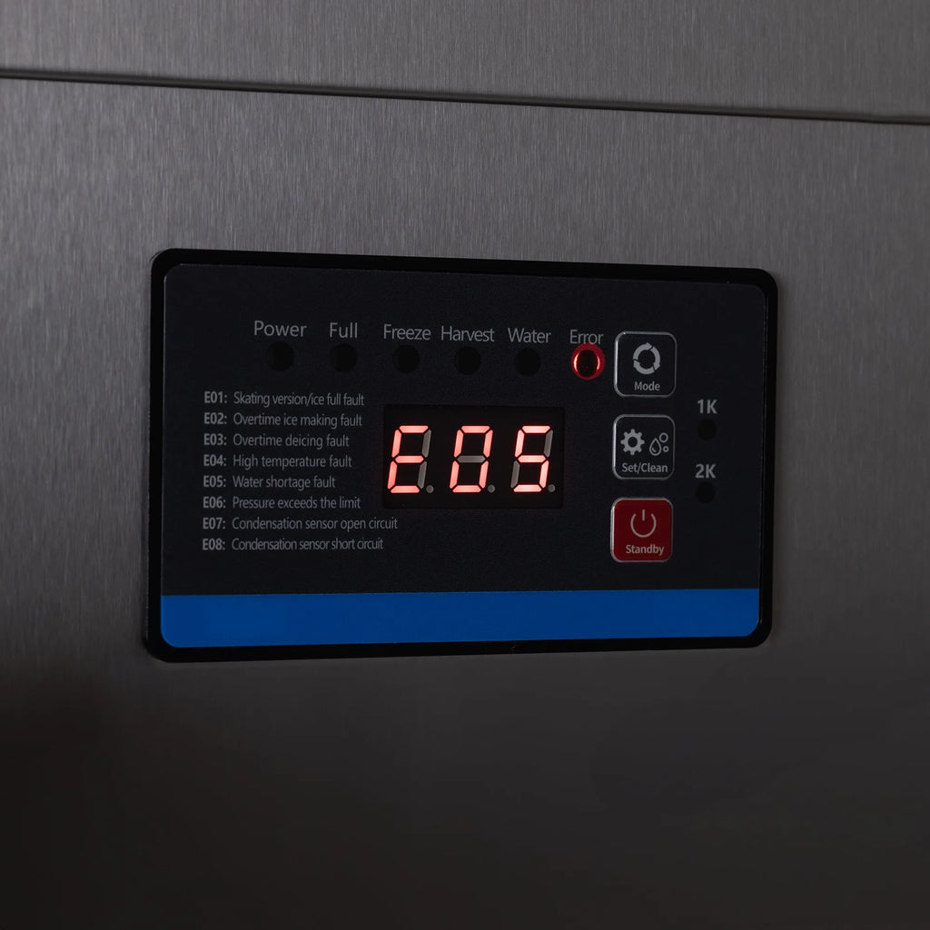 A standout feature of this machine is the digital controller. Operators can adjust ice thickness with just a few button presses, creating flexibility to meet customer preferences. The controller also displays status codes during ice production, giving real-time updates for simple monitoring.