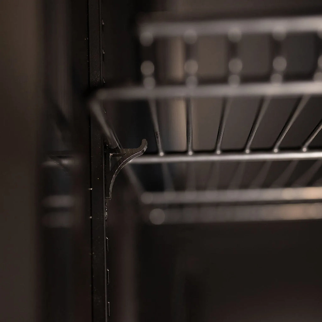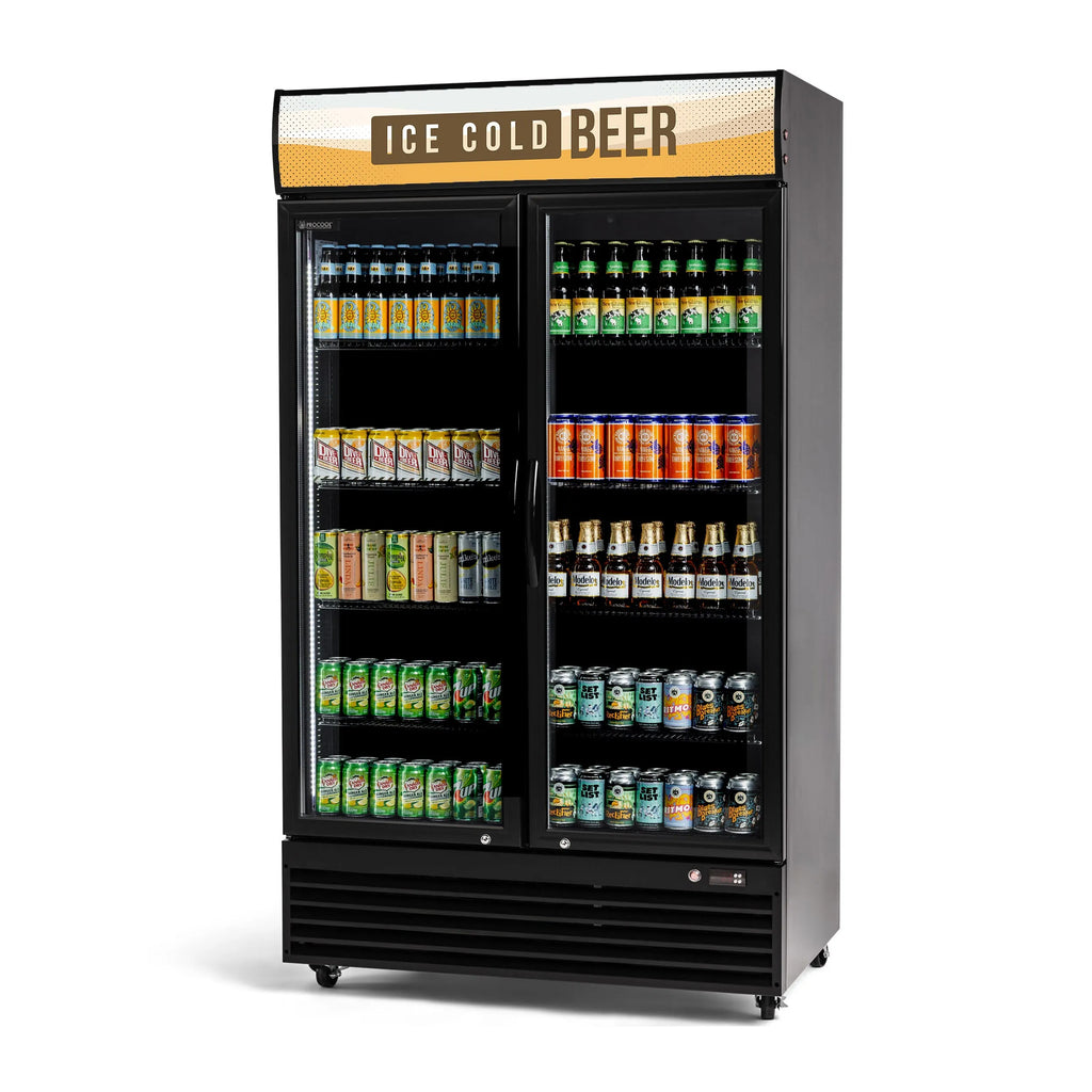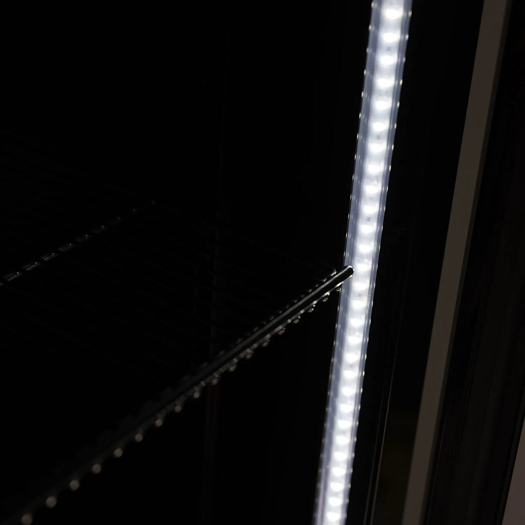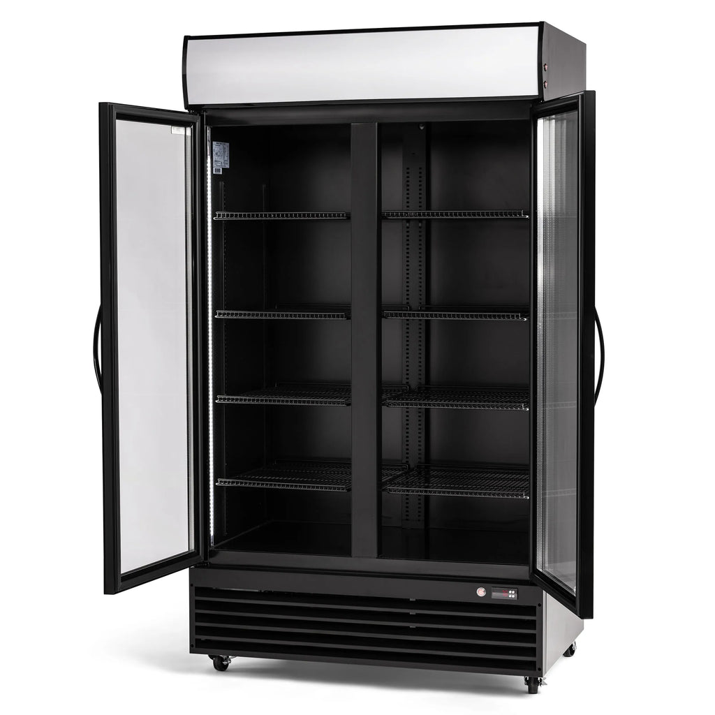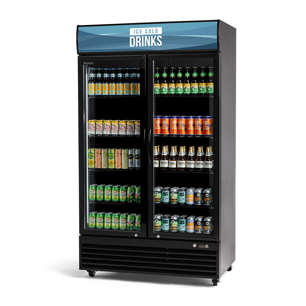 This Procool 2 door upright beverage display cooler features a dynamic cooling system. The commercial grade compressor and circulation fans provide fast cooling and an even inside temperature for your product. The digital temperature controller shows the current temperature and system settings on an easy to read LED display. This cooler has an automatic defrost system which drains into a heated, self evaporating tray underneath the cooler that never needs emptying. The eight included shelves are individually adjustable to make room for products of various heights. Extra shelves are available for purchase as well. The double glass doors on this merchandiser are dual paned and tempered on the exterior for additional safety. The self-closing feature keeps the doors closed after each use, and a lock and key secure the contents after hours. Two vertical interior LED lights completely illuminate each shelf for added attention. The classic design of this display cooler make it suitable for a variety of products in any business or home. We are also able to wrap the sides of this cooler with a design of your choice!