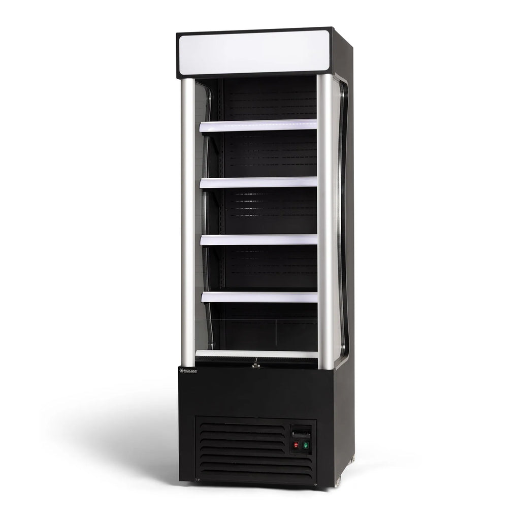 As an open air display cooler, it presents products in a bold vertical showcase, so color, labels and promos pop from across the store. Think of it like an open air merchandiser designed to attract attention and keep lines moving during rush hours.